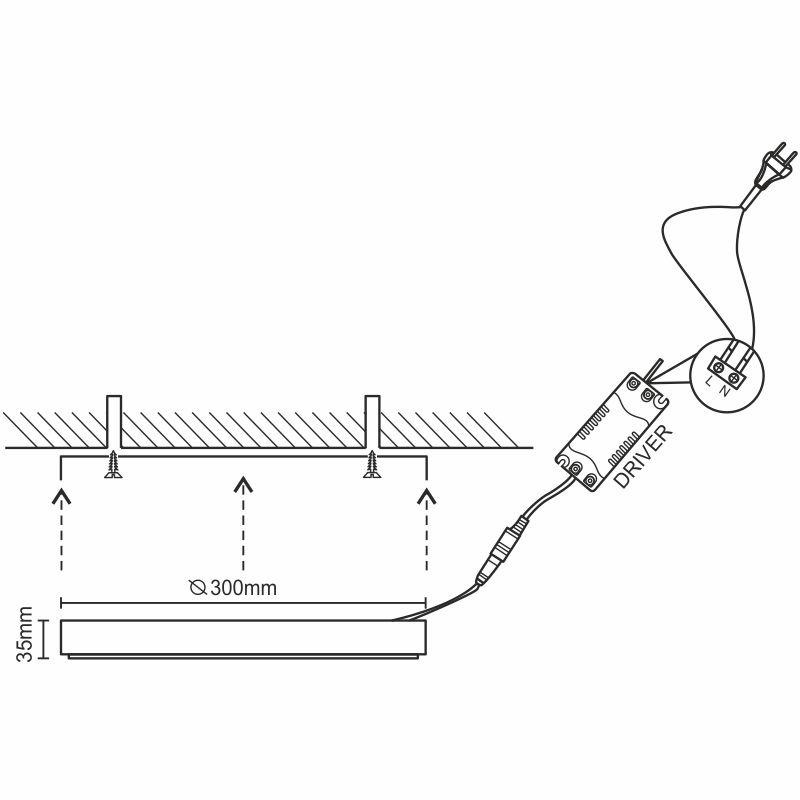 Panel je prispôsobený pre montáž priamo na stenu alebo strop.