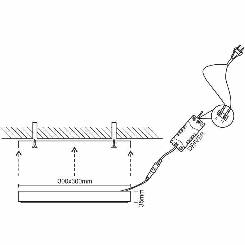 Panel je prispôsobený pre montáž priamo na stenu alebo strop.
