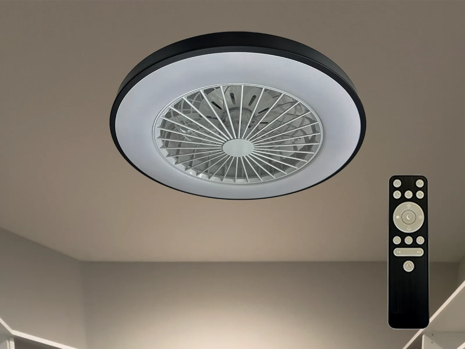 Pomocou diaľkového ovládača je možné nastaviť až 5 rýchlosti ventilátora s možnosťou spätného chodu. Taktiež je možné samostatne zapnúť svetlo, ventilátor alebo obe súčasne.