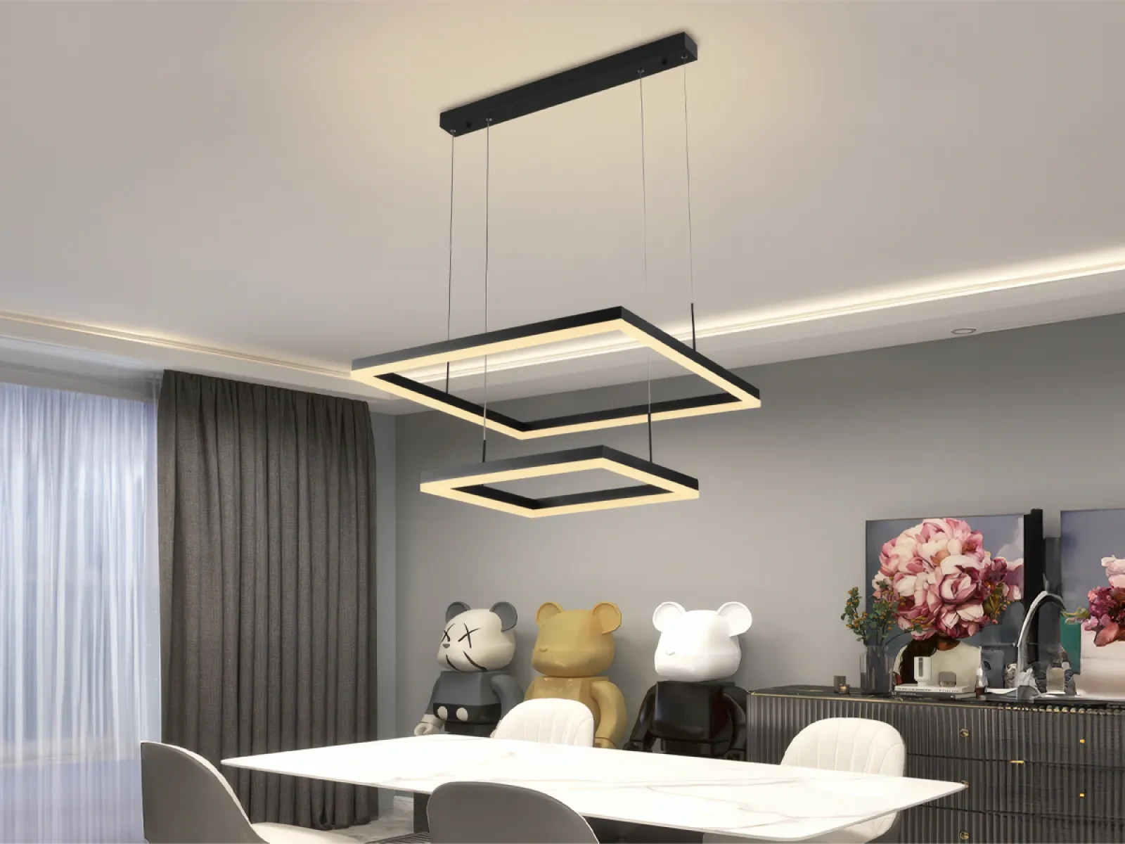 LED dizajnové závesné svietidlo s diaľkovým ovládačom RF 2,4GHz značky NEDES, je lampa vhodná do kuchyne, jedálne, spálne, chodby alebo obývačky. Tieto svietidlá vynikajúco kombinujú moderný štýl s najvyššou kvalitou. Svetlá sú ovládané SMART technológiu pomocou aplikácie NEDES Smart.