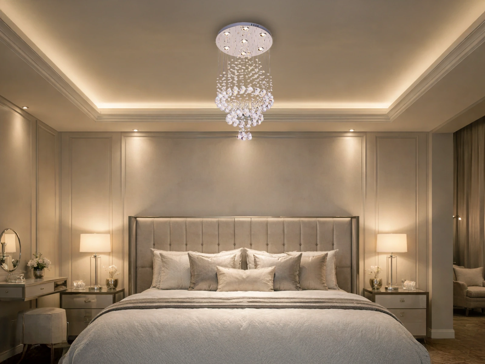 Moderné LED svietidlo s jemným krištáľovým dizajnom značky NEDES vyniká jemnou hrou svetla a vzdušným prevedením. Zavesené brúsené krištále vytvárajú príjemný svetelný efekt a dodávajú interiéru elegantný vzhľad.