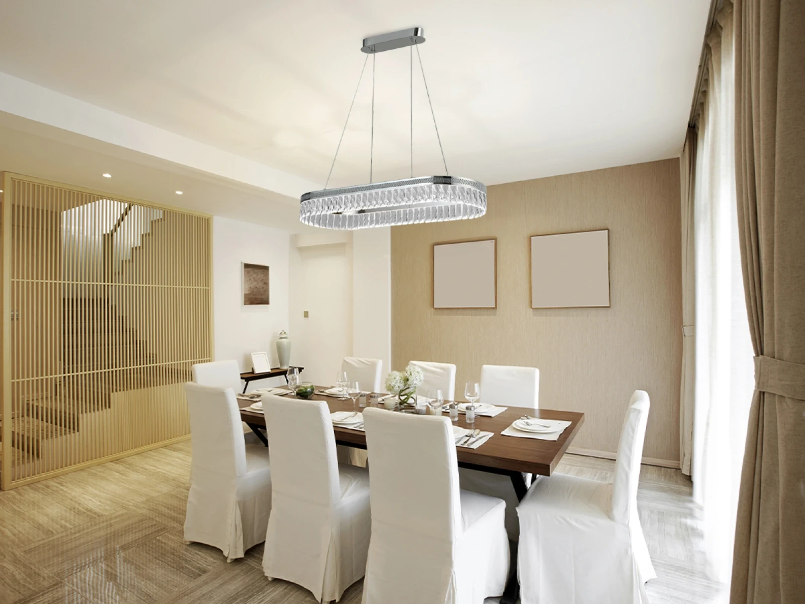 Dodajte svojmu interiéru štýl a eleganciu s dizajnovým závesným svietidlom THALIA N2109. Tento moderný luster s lesklou chrómovou povrchovou úpravou a dekoratívnymi krištáľovými prvkami sa stane centrálnym dizajnovým prvkom každej miestnosti – či už ide o obývačku, jedáleň alebo reprezentatívny priestor.