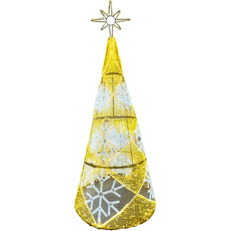 Elegantný dizajn a zlaté odtiene doplnené o biele snehové vločky s hviezdou na vrchole, vytvárajú okúzlujúci vzhľad, zatiaľ čo LED svetielka pridávajú jemný lesk.