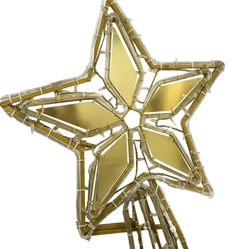 Elegantný dizajn a zlaté odtiene doplnené o zlaté hviezdy s efektom padajúcich komét, vytvárajú okúzlujúci vzhľad, zatiaľ čo LED svetielka pridávajú jemný lesk.
