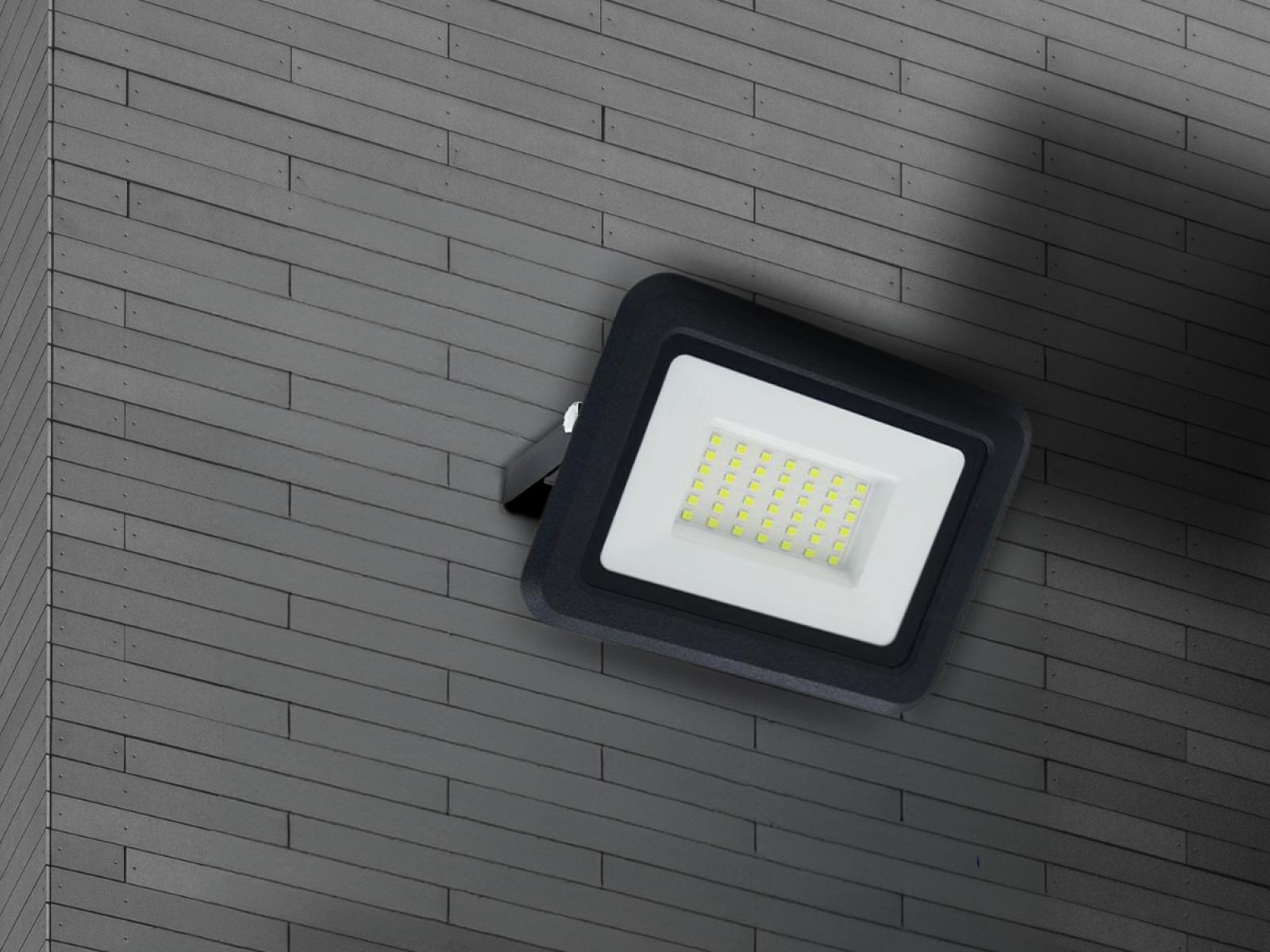 LED reflektor LF0023 v čiernej farbe, s výkonom 30W, svietivosťou 2400Lm a farbou svetla 4000K disponuje držiakom a vysokokvalitným LED čipom.