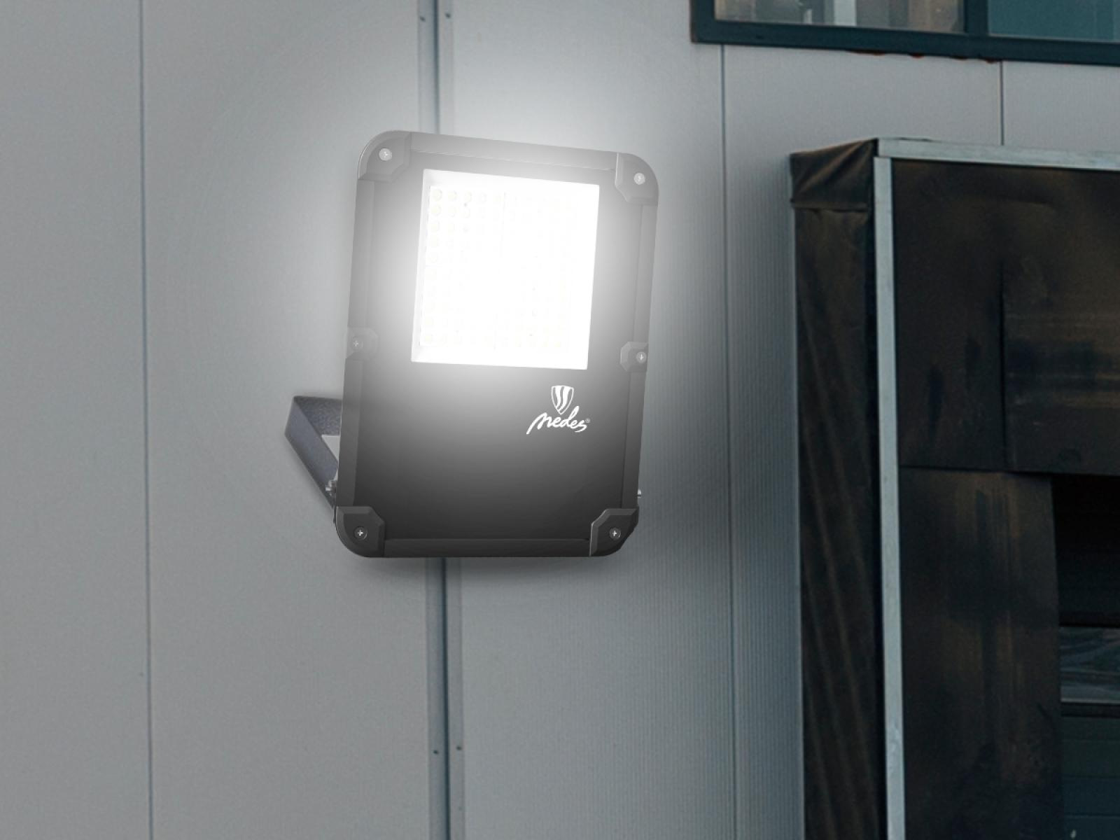 LED reflektor LF4024N v čiernej farbe, s výkonom 50W, svietivosťou 7500Lm a farbou svetla 5000K disponuje držiakom a vysokokvalitným LED čipom.
